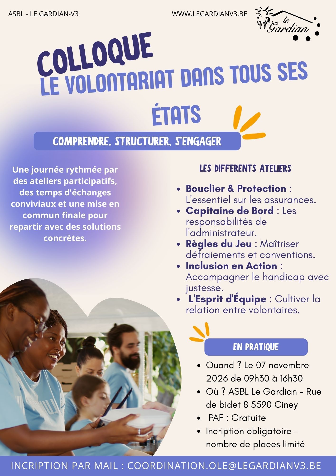 Nous avons le plaisir de vous inviter à notre prochain colloque dédié aux enjeux et à l’avenir du volontariat. Les informations via ce lien. Inscription par mail à coordination.ole@legardianv3.be