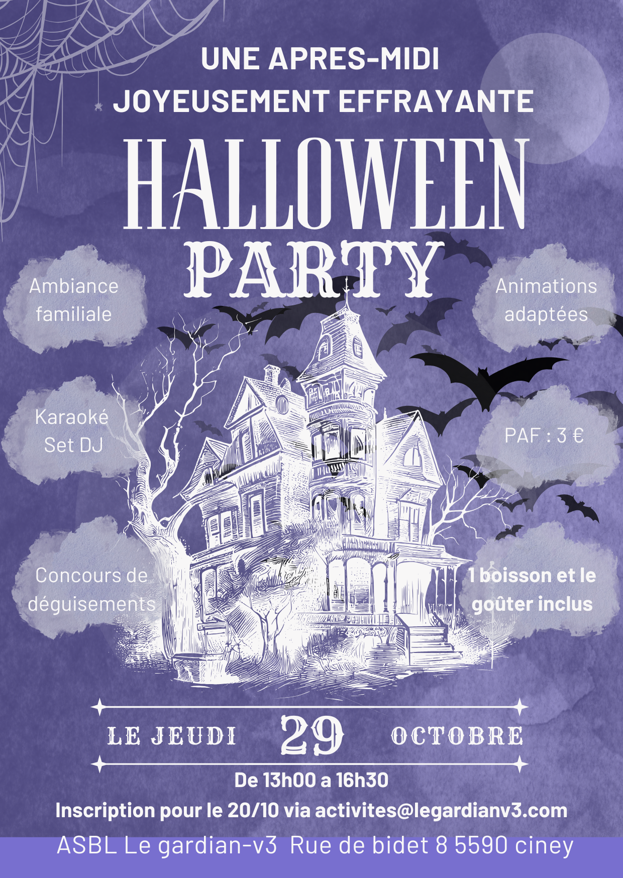Une après-midi joyeusement effrayante et inclusive. Les renseignements via ce lien. Inscription par mail à activites@legardian3.com